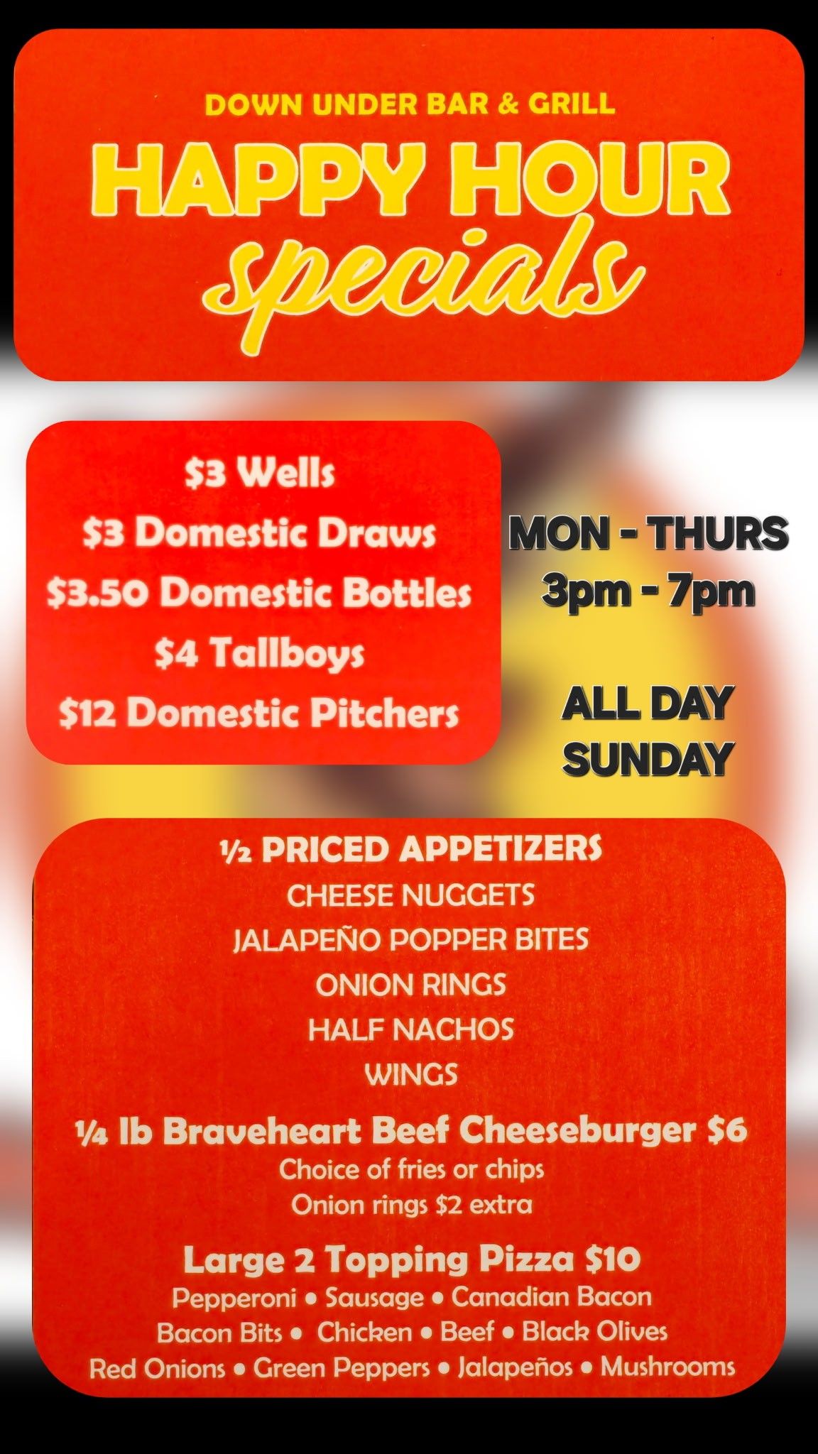 Down Under Bar & Grill was voted "Best Overall Bar in the Metro", "Best Bar Food", and "Best Westside Hangout in the Metro".